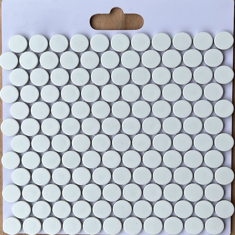 - Gạch mosaic bi tròn là mẫu vật liệu ốp lát được làm bởi nhiều viên gạch hình lục giác kích thước nhỏ liên kết với nhau tạo thành các vỉ gạch. Gạch có màu sắc đa dạng, có thể tạo hình nên rất được ưa chuộng sử dụng trong việc trang trí. Công trình xây dựng trong nhà và ngoài trời sử dụng vật liệu đảm bảo độ bền cao cùng tính thẩm mỹ nổi bật.